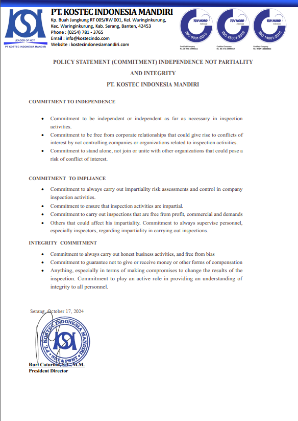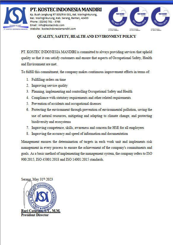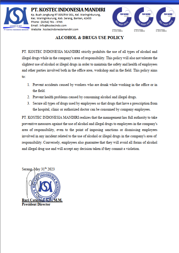 POLICY PT. KOSTEC INDONESIA MANDIRI
